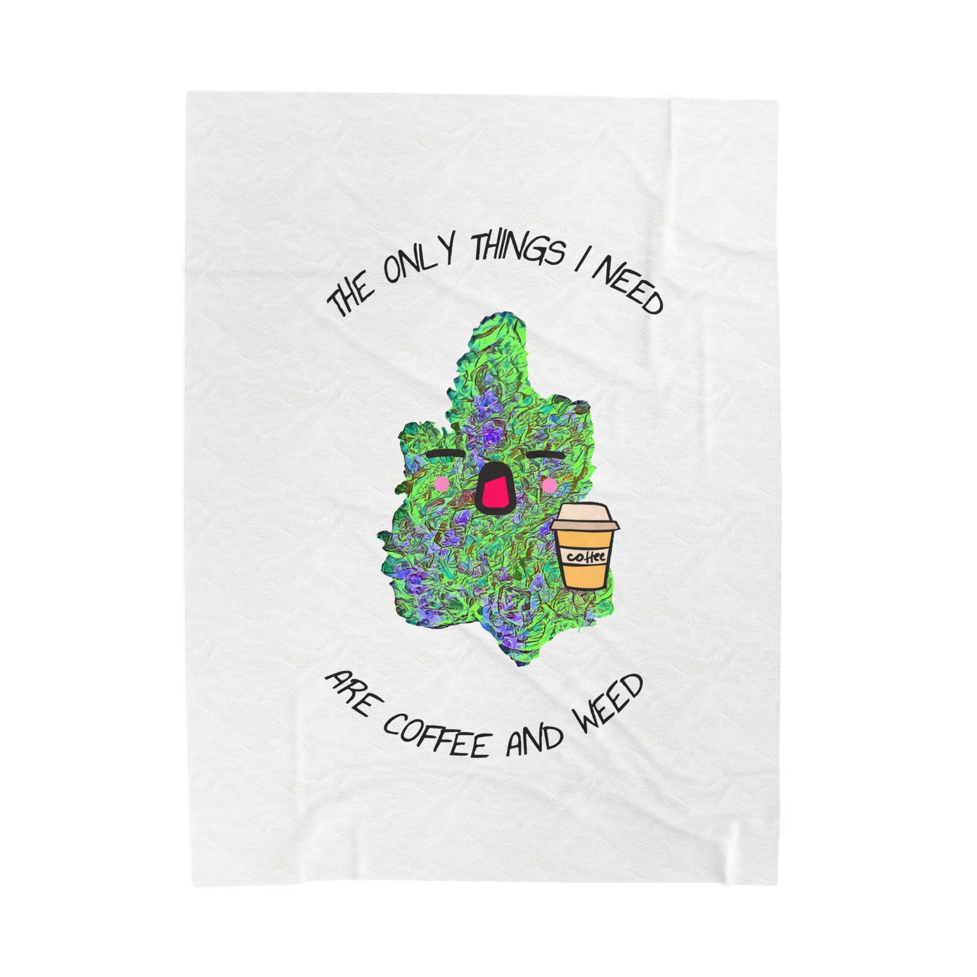 Coffee and Weed Cozy Velveteen Plush Blanket with Coffee and Cannabis Design, Perfect for Relaxing, Gifts for Stoners, Home Decor