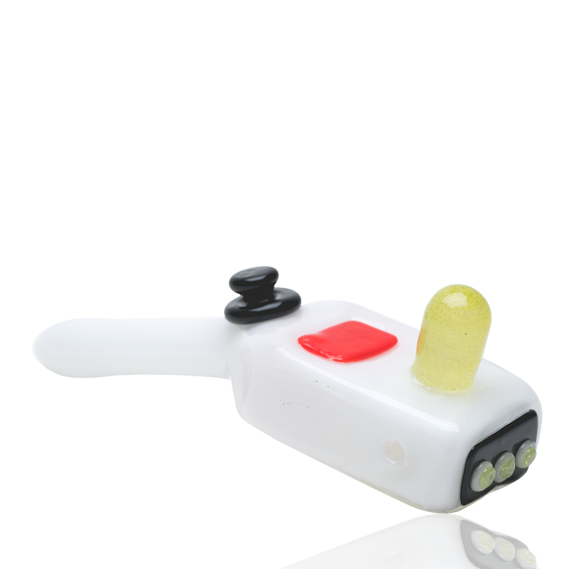 Be prepared to fly high out of this world and travel to a different dimension after adding the Dimensional Dial Glass Sculpture to your collection. This heady glass hand sculpture was hand blown by Empire Glassworks in sunny California. The majority of the body is made of thick white colored glass, with red and black accents, however there is some special green glass, which makes this Cartoon Inspired hand sculpture glow under a blacklight! Take a break from your existence and travel the multiverse.